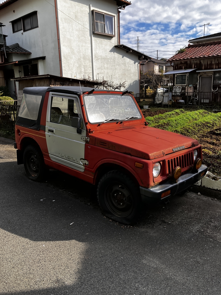 歩く道すがら、捨てジムニー。